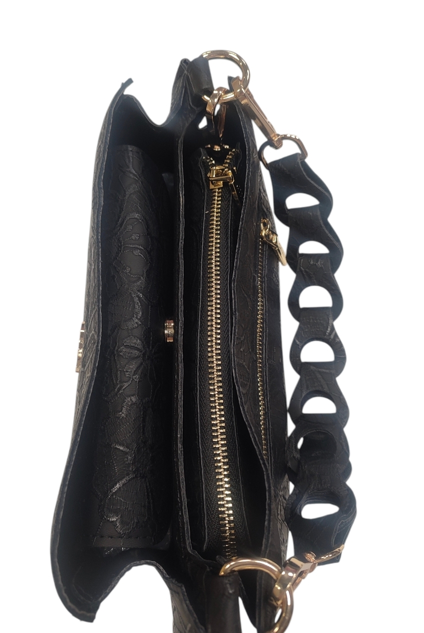 Kožená kabelka Chiara Saba v čiernej farbe je perfektnou voľbou pre ženy, ktoré chcú zdôrazniť svoju jedinečnosť a štýl. Vďaka vysoko kvalitnému spracovaniu a funkčným vlastnostiam je perfektným doplnkom na každodenné nosenie aj na špeciálne príležitosti. Vyberte si Sabu a užívajte si eleganciu a pohodlie každý deň.