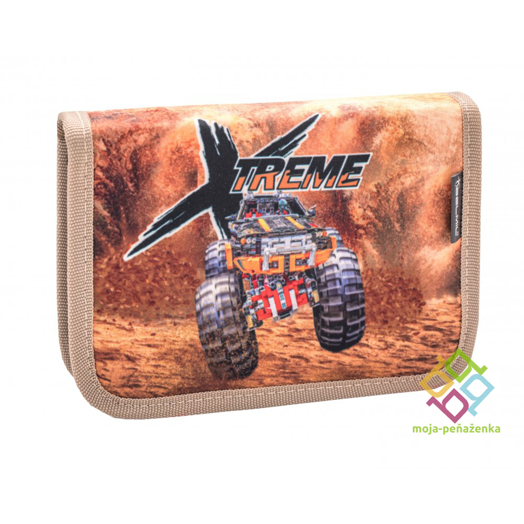 Prázdny školský peračník, ideálny pre prvý stupeň základnej školy. Dve vyklápacie chlopne majú z jednej strany priehľadné fólie na rozvrh hodín. Po vyklopení chlopní nájdete vo vnútri množstvo užitočných gumových úchytov na písacie potreby.
